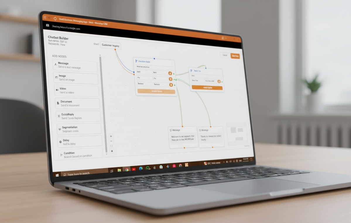 Create quick replies for common questions and request template approval for outbound notifications (order confirmations, pickups, delivery windows). Build basic chatbot flows for lead capture and FAQs so agents receive pre-qualified chats.